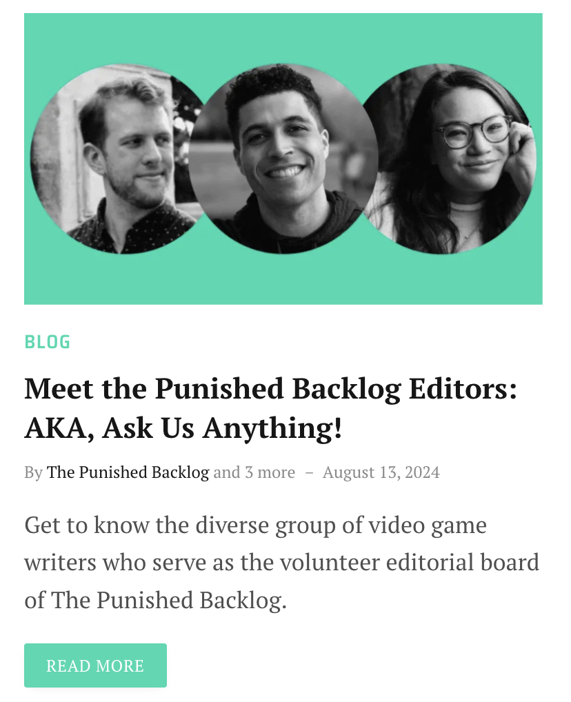 The Punished Backlog is an independent video game and entertainment site with over 50,000 monthly readers. We pride ourselves on being a diverse group of passionate writers.